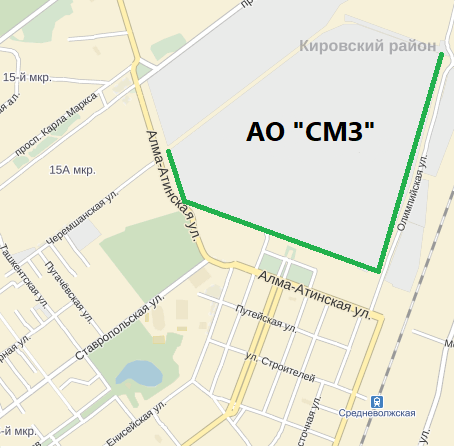 - Территория, примыкающая к забору охранного периметра завода по улице Алма-Атинской, от пересечения с улицей Олимпийской до пересечения с улицей Черемшанской